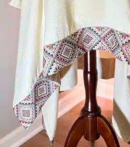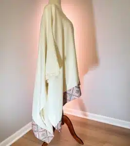 Stay effortlessly elegant with this butter cream embroidered (Tatreez) hijab-friendly cardigan from Falahi House. Designed for modest fashion, it features a lightweight, breathable fabric with a flowy open-front design and delicate embroidery along the hem. Perfect for layering over dresses or abayas, this versatile piece blends comfort and sophistication for any occasion.