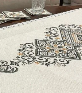 Add a warm, cultural touch to your home with this Mocha Brown Embroidered Table Set Runner. Featuring intricate embroidery, this beautifully crafted set blends Arabian culture with modern elegance, making it a stunning addition to any dining or living space. Whether you’re hosting guests or enhancing your everyday décor, this embroidered table set brings warmth, charm, and sophistication.